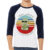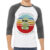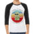features raglan 3/4 sleeves and a modern fit that is perfect for a day