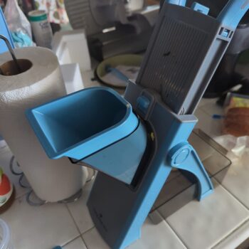 We adore this mandolin. Its assembly is straightforward, and it simplifies vegetable slicing. The suction cups keep it steady, and switching functions is a breeze. We’ve recommended it to friends and family."