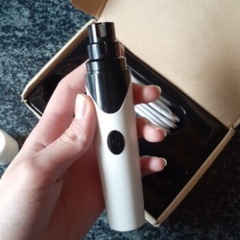I don’t normally write reviews, but I felt this one warranted one! I have a 6 year old mini dachshund and trimming nails has always been rough!! Screaming and biting (from the dog). I’ve tried other nail grinders and she was terrified of them. I came across this one and thought I’d give it a try. It took only 5 minutes to do ALL FOUR paws! She held perfectly still and didn’t fight me a single bit!! She even wagged her tail when we were done!! Hallelujah I think we found the tool for us!!!