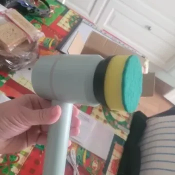 This electric spinner brush is a wonder for my shower. Living in Florida, we often get red residue, and this brush removes it effortlessly. It's also great for hard-to-reach corners.